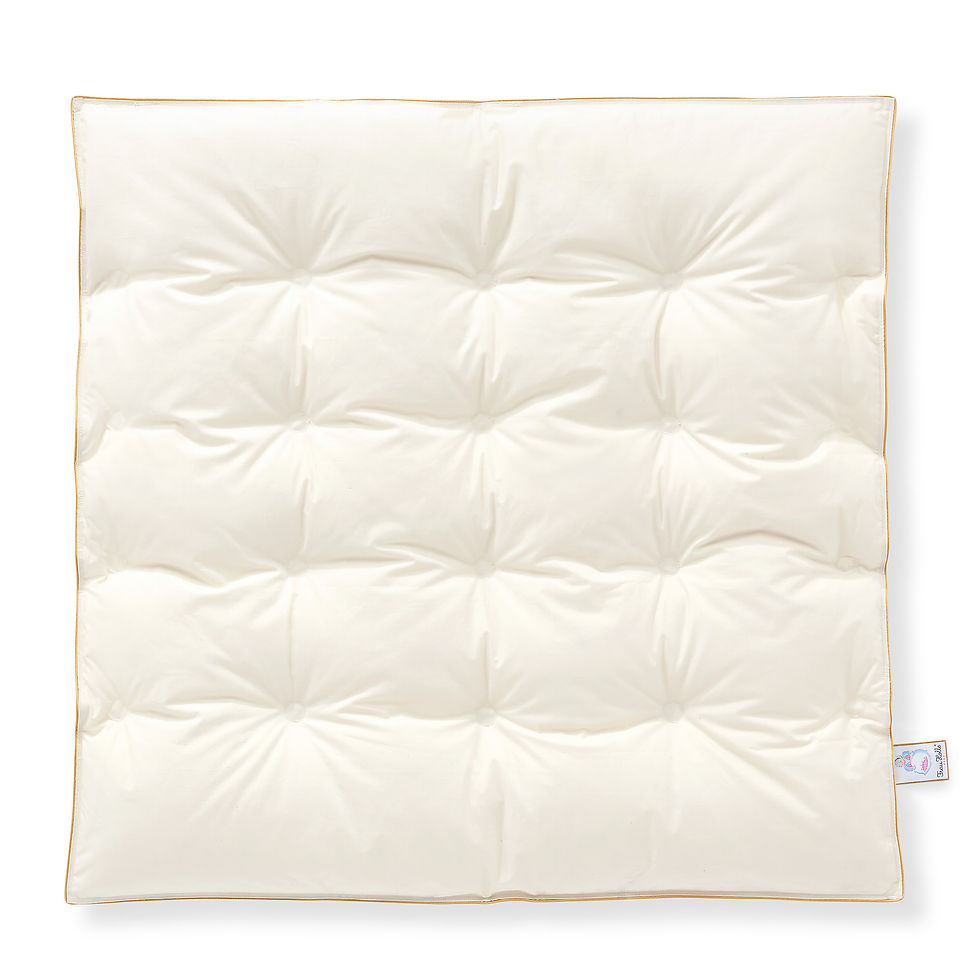 Text: Kopfkissen haben eine andere Funktion als Bettdecken. Von den Daunenbettdecken wollen Sie fein, weich, leicht und wärmend zugedeckt werden, Kopfkissen hingegen sollen Ihren Kopf stützen. Daher werden den Daunenkissen Federn beigemengt, die diese „Stützfunktion“ übernehmen. Die Gänsefedern funktionieren dabei als Stütze, die den Kopf elastisch „abfedern“ und stützen. Es gilt – je nachdem, wie Sie liegen (Rücken-, Seiten-, Bauchschläfer) – die Höhe zwischen Matratze und Kopf auszugleichen, damit Ihre Wirbelsäule in ihrer natürlichen Form liegen und Ihr Nacken entspannen kann.